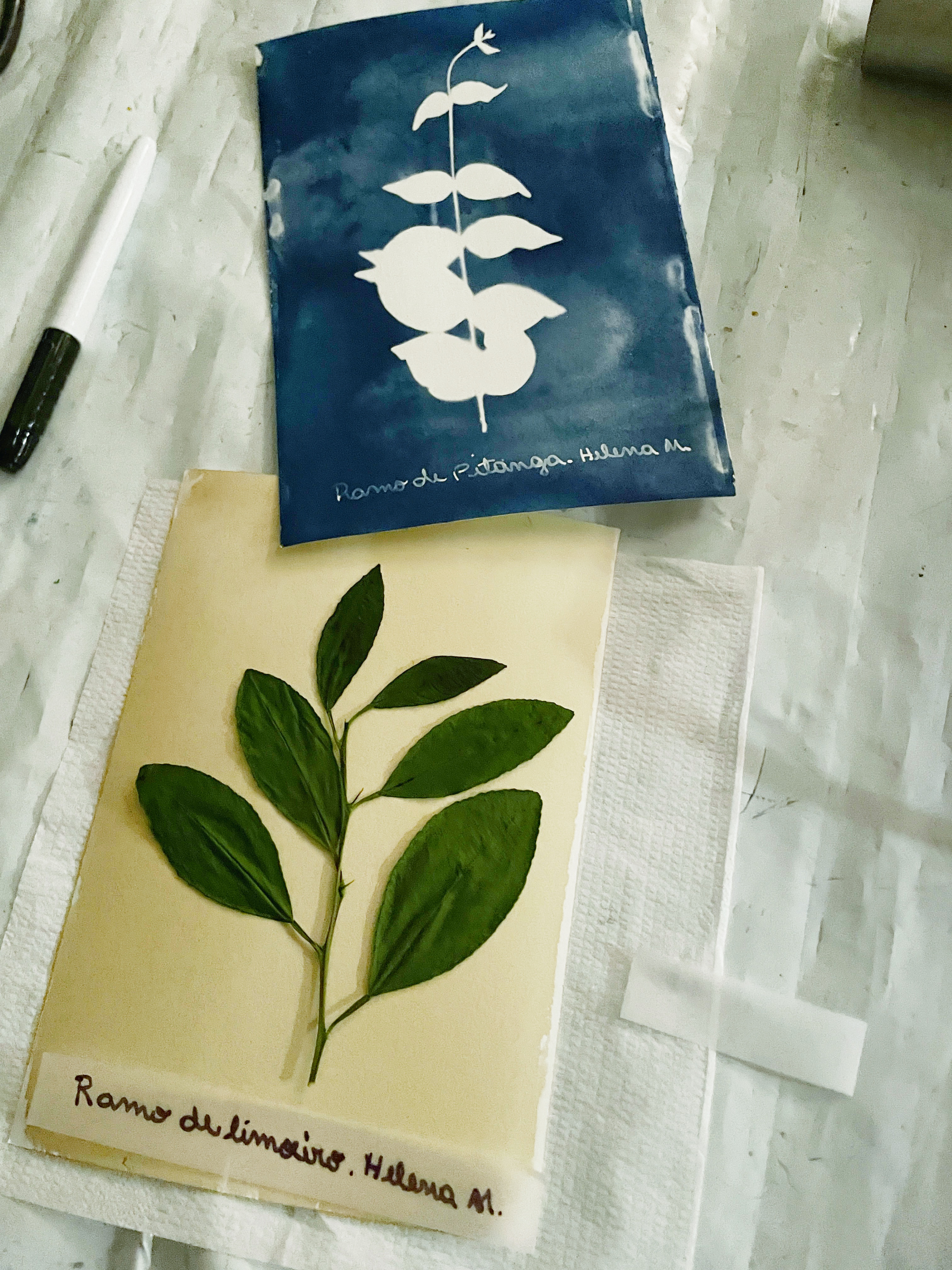 No mini curso desta semana no Sesc, trabalhei junto com a biológa Beatriz de Castro, com identificação das plantas dos arredores do Sesc e depois fizemos as cianotipias no laboratório do Pompéia. Bia mostrou como se faz a coleta adequada com materiais de fácil acesso e os cuidados necessários com as plantas. Levei todo o material na saída e organizamos lá mesmo os cuidados com as amostras.