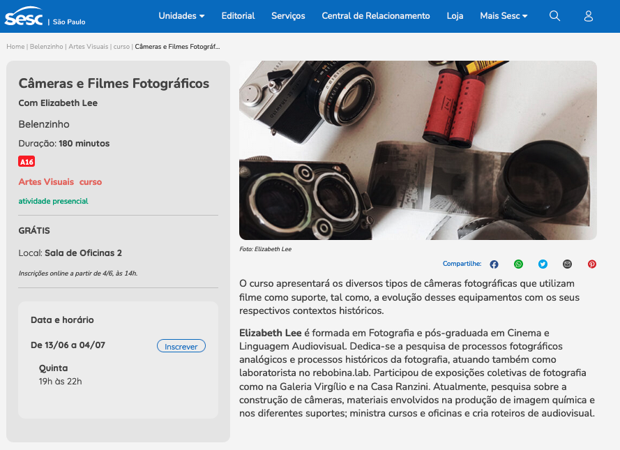 Nesta quinta começa mais um curso para quem quer ter o primeiro contato com fotografia analógica no Sesc Belenzinho.