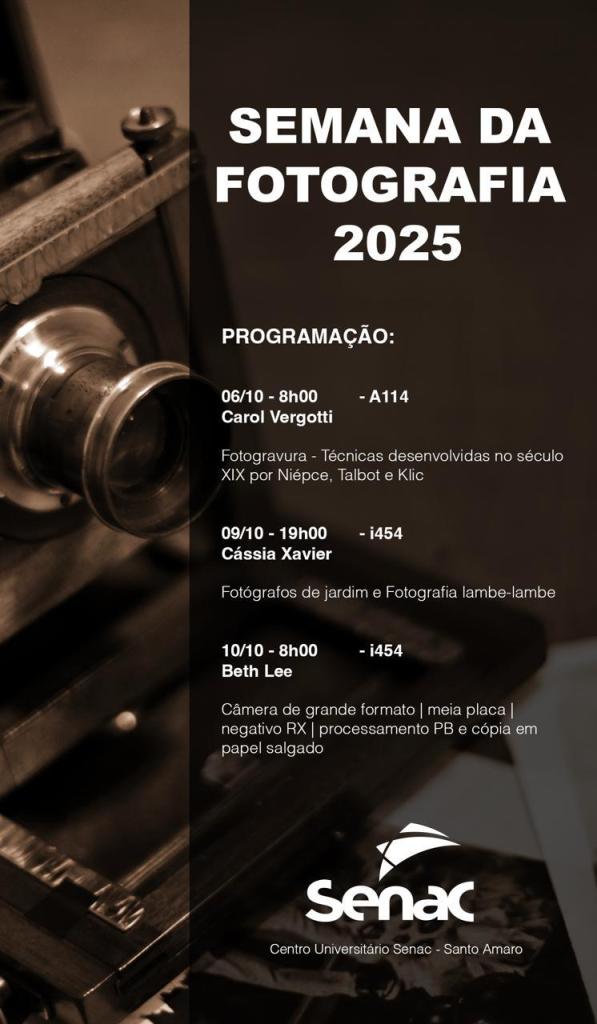 Nessa mesma linha de atividade, na sexta-feira passada participei da Semana da Fotografia no Campus Senac. Não divulguei porque não sabia se era aberto ao público geral (geral-geral de fora do senac ou se era só aberto para senaquenses em geral) Fiz a demonstração com a grande formato e papel salgado.