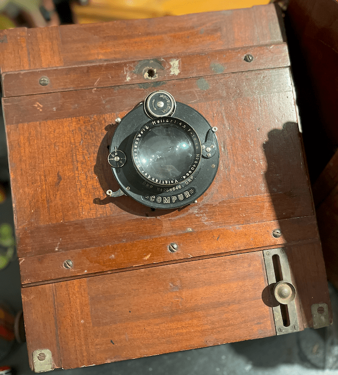 Enquanto isso volto à minha realidade e me deparo com minhas próprias experiências. Recentemente adquiri uma câmera de madeira toda surrada, foi praticamente de bônus por ter comprado uma outra câmera mais inteira. Na hora eu não achei que ficaria com ela, mexi um pouco e o fole estava soltando todo. Mas algo nela, de formato semelhante a 13x18cm (que é minha proporção favorita), me fez pensar que posso colocá-la para enxergar de novo. Lembrei de uma objetiva que ficou largada, quase foi ao lixo, e vi que ela encaixava nessa cam. Senti como se criasse algo de volta à vida, ela me lembrou o Frankenstein de Mary Shelley, o ser que só queria ser amado. (muita gente se referencia como um monstro a esse personagem, mas no livro dela ele não é só isso) Tem um personagem do Dragon Ball que é um andróide inspirado no Franks (eu já dando apelido) que é o Andróide 8 e Goku o apelida de Hacchan (Hachi=8 chan=terminação carinhosa, quando se tem familiaridade, enfim, não vou conseguir explicar essa parte direito :))