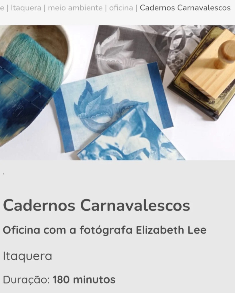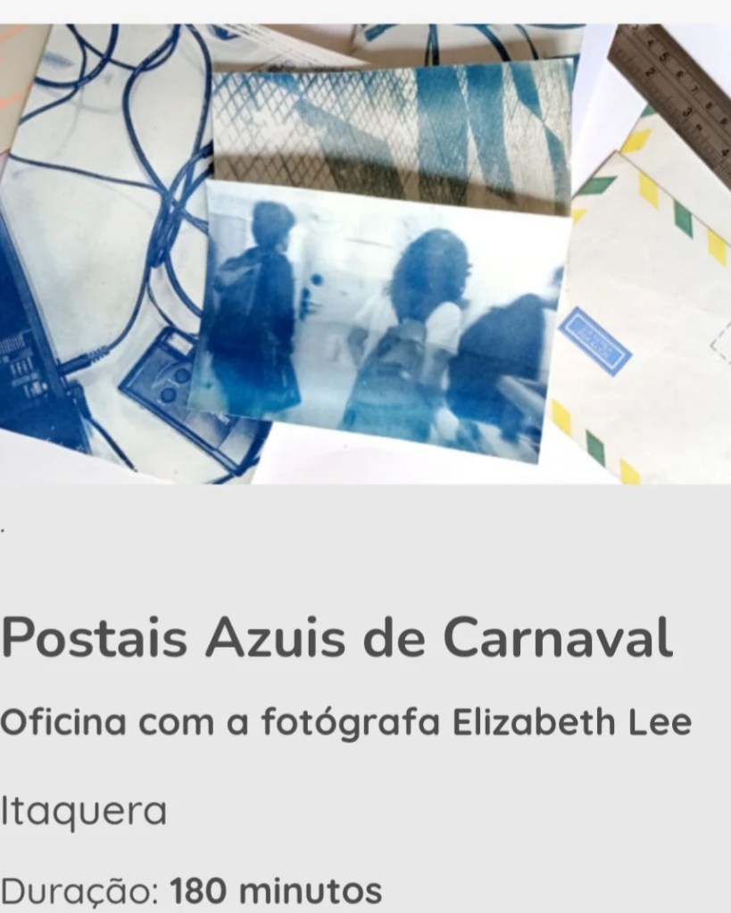 É nesse carnaval que vai ter cianotipia em forma de postais e cadernos. Dia 20 e 21 de fevereiro às 10h, respectivamente. No Sesc Itaquera, retirada de ingressos meia hora antes da atividade.