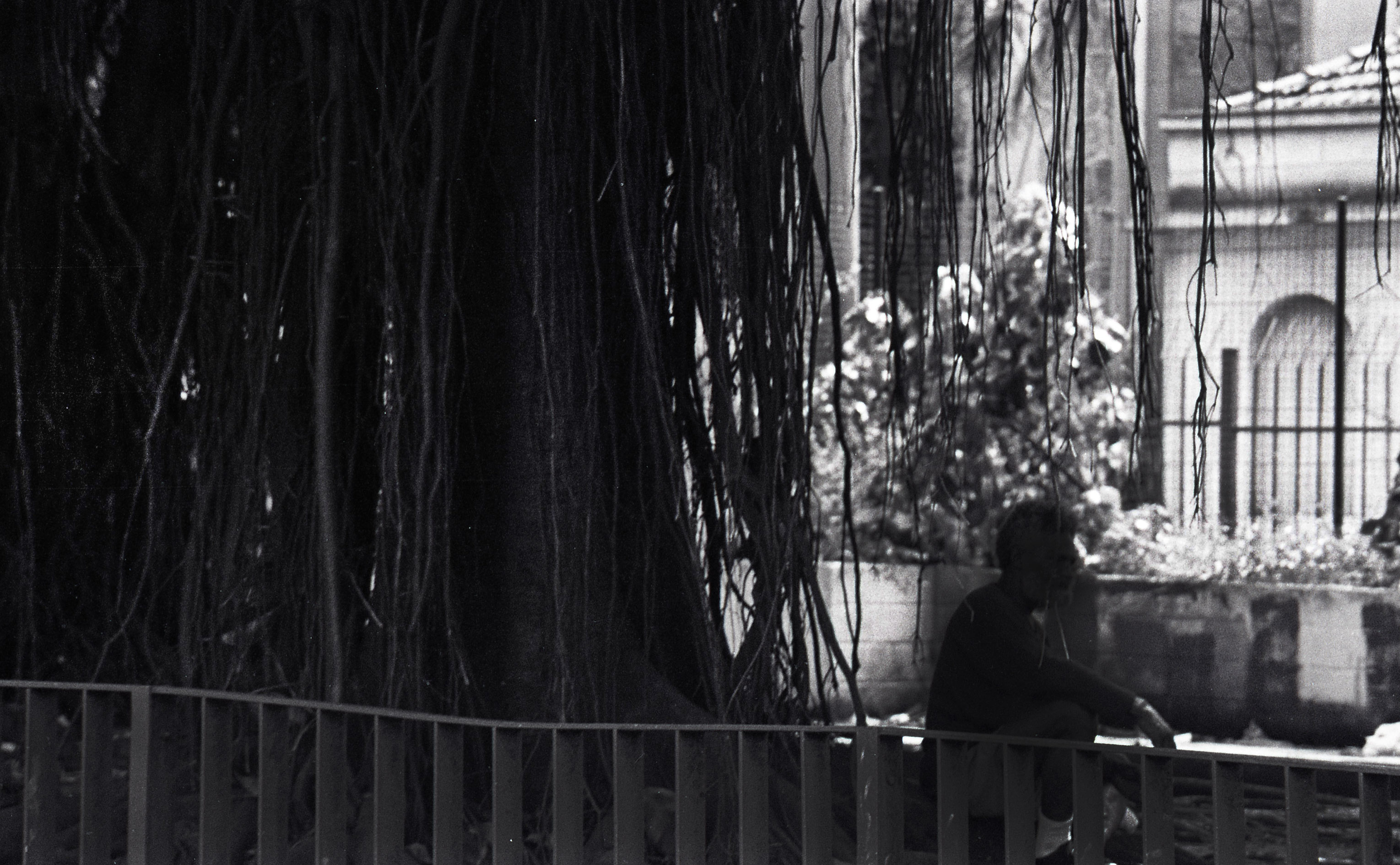 Sei que apontei a câmera para ele e assim que tirei a foto o homem se sentiu incomodado e de longe parecia desaprovar o uso de sua imagem. Na hora queria apagar a foto do filme, mas se o fizesse perderia algumas outras abrindo a minha pequena Pentax K1000. Ele ficou incomodado e eu não queria que sentisse assim. Daí que vi que mesmo sendo um anônimo acabou por alguns instantes perdendo sua privacidade a partir do momento que eu buscava uma imagem da sua situação. E observando-o mais um tempo ele parecia chateado com alguma coisa e por isso estava lá. E ele não queria estar ali.