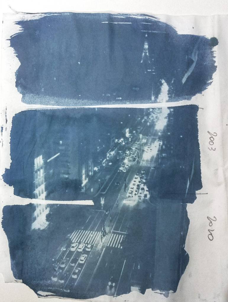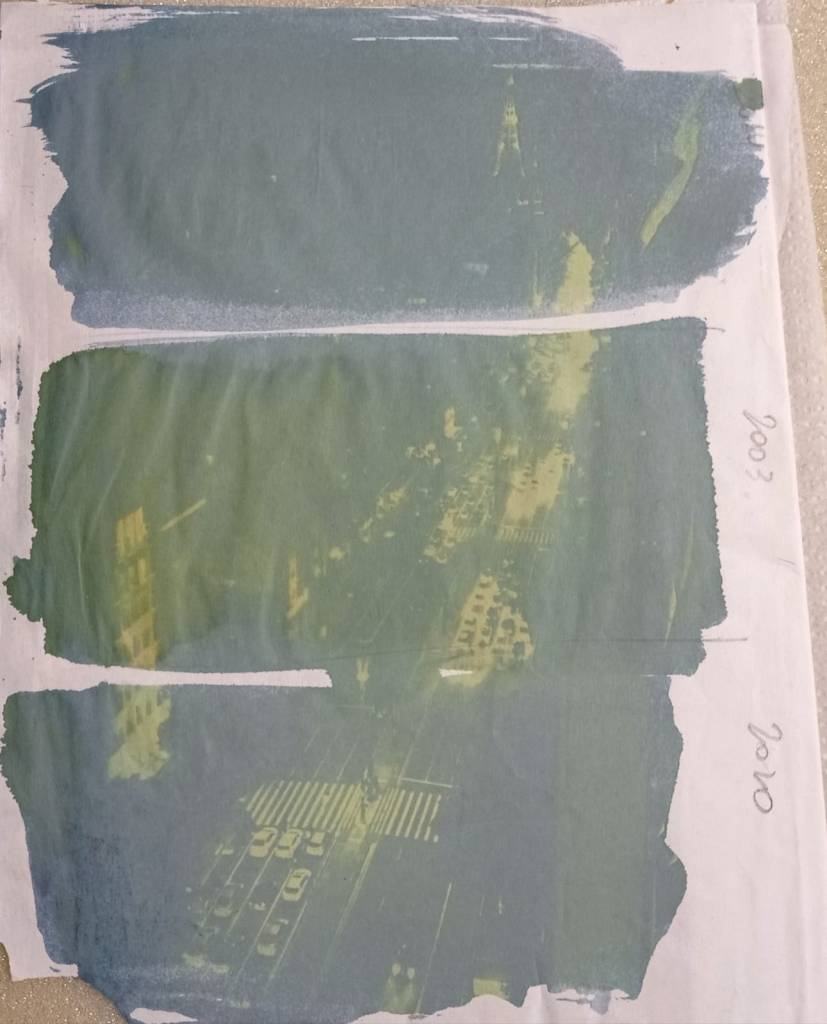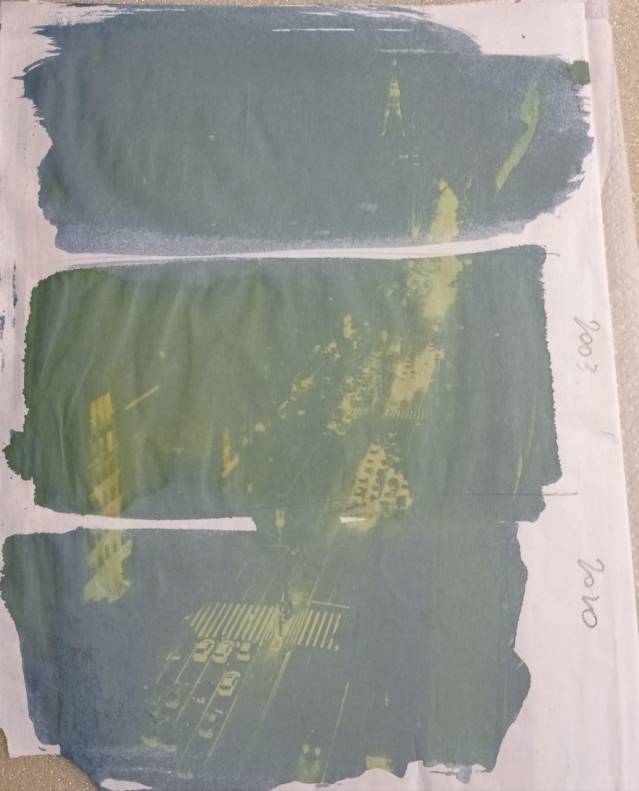 Num papel neutro apliquei o reagente de 2014, 2003 e 2020. Coloquei um negativo qualquer e deixei exposto ao sol por um tempo.