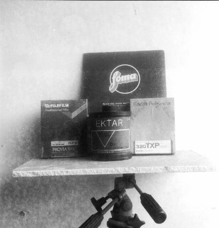 BL: Não, porque já vimos o resultado nas revelações anteriores. Fotografamos a mesma cena, com objetos de cores diferentes. Duas escalas no mesmo filme 120, corto no meio e revelo com essa diferença no químico. (a parte de fotografar cores diferentes nem era tão necessário neste teste, mas como já faríamos uma escala, seria bom pra mim ver também até onde ele entendia sobre cores)